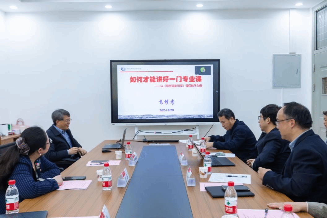 随后袁修孝教授以“如何才能讲好一门专业课”的问题引出他的报告主题,他以自己负责教学的《摄影测量学》课程作为实例,向大家阐述了坚定教学信念、夯实教学基础、创新教学模式这三个方面的教学思考与体会,与各位老师们探讨如何守正创新,如何不断打磨教育教学技巧。他指出,老师教学要以学生为本,服务行业,并且起到示范引领的作用。最后,他以“师者,传道授业解惑也”作为自己的教学理念总结,认为教学是传承与创新的过程,应当重视与时俱进,不断自省、不断进步。