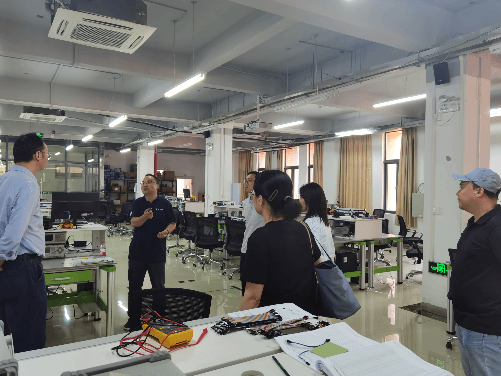 调研期间,专祥涛副院长一行参观了工创中心的基础制造、先进制造、智能制造、电工电子、人工智能、虚拟仿真等6个实践教学实验室。各个实验室均配备了先进的设备和技术,目前已经开发了模块化的实践内容,为学生提供了丰富的实践机会。在参观过程中,教师们纷纷表示,这些实验室的建设和管理水平都非常高,对于提高学生的工程实践能力具有重要的促进作用。