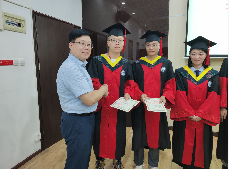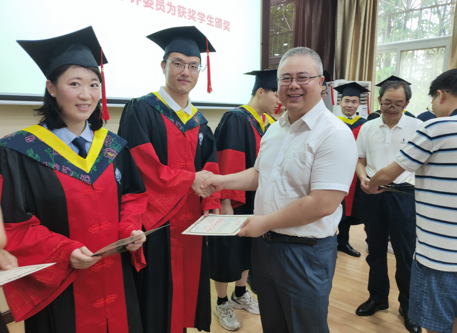 董旭柱院长致欢迎词。董院长对各位学评会委员的到来表示欢迎,对获奖学生表示热烈祝贺,希望以此激励所有研究生刻苦专研,进一步提高学位论文的质量。