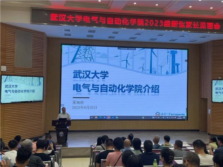 随后,院长董旭柱教授从学科建设、科研平台、师资队伍、科研实力、就业形势与情况等方面对学院进行了详细介绍,希望家长朋友们能够给予武大电气信心和信任,学院将秉持“团结、严谨、勤奋、进取”的院训精神,一如既往地为我国电力工业培养高级人才。同时,董院长结合自身作为家长的经历,希望家长们适当给予孩子支持与信赖,为孩子的成长成才创造有利条件。