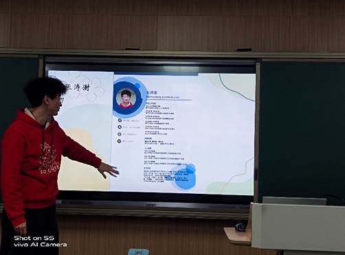 电气二班在进行同学们分享之余还邀请到了班主任和班助与同学畅谈,班助郑燊聪学长为同学们分享了一些本科阶段的经历,号召同学们通过简历制作来清晰地认识自我,做到有目标、有规划、有动力。班主任陈老师也对简历汇报做了点评,指出简历制作时要突出亮点,比如奖项、专利、科研成果等,鼓励大家在本科阶段向着百花齐放的方向发展,在扎扎实实完成专业课程学习的过程中,找到一条适合自己的成长路径。