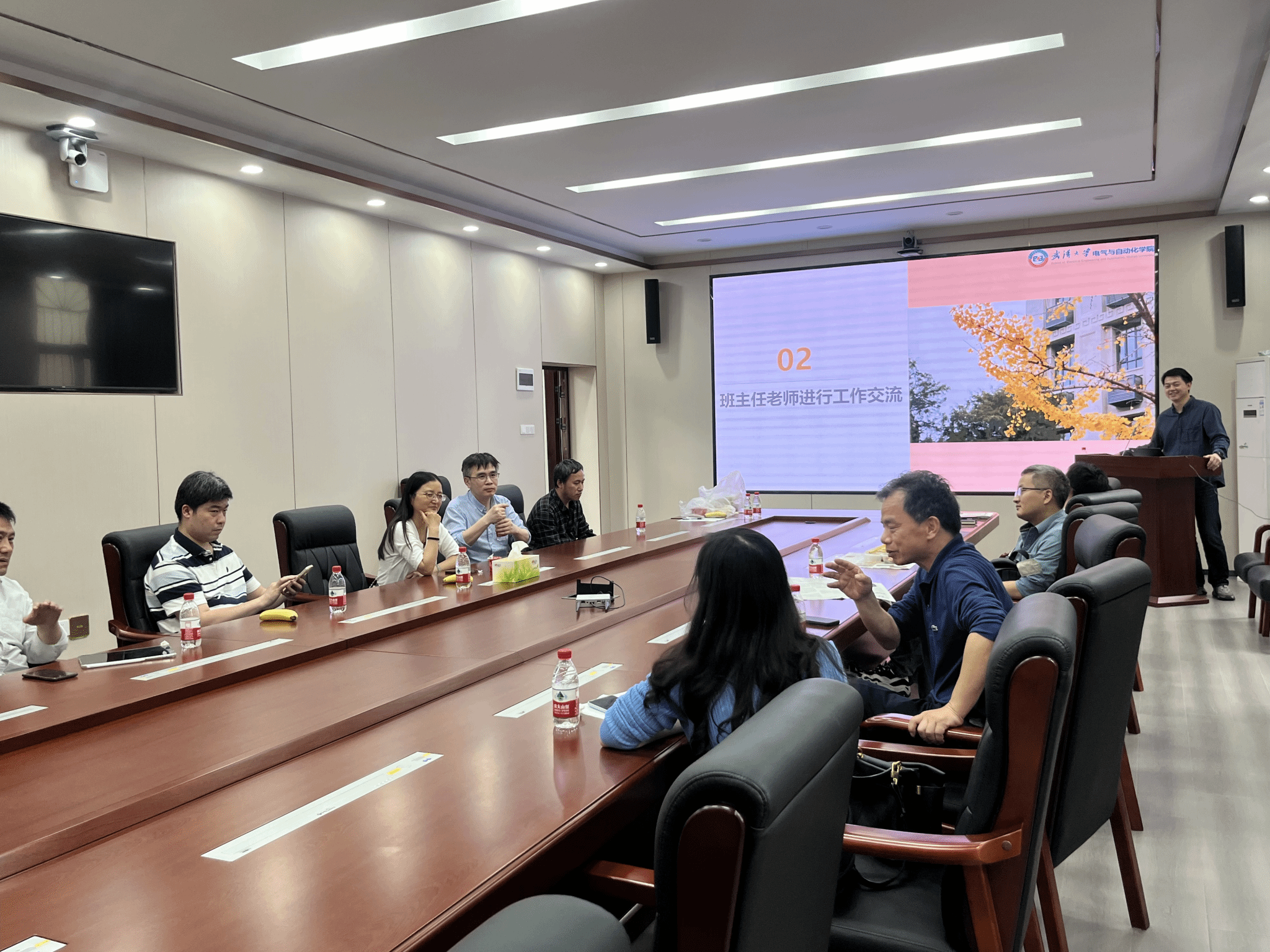 在班主任交流环节,班主任们轮流发言,讨论分享了自己带班的心得体会,与其他老师交流共性问题。2302班班主任陶劲松、2303班班主任廖清芬和2309班班主任彭晓涛等多位老师都分享了他们在担任班主任期间发现的学生问题。陶老师指出,很多学生对于课程的学习方式还停留在高中,老师们需要转变学生的观念,为他们提供指导。班主任老师通过多种方式方法开展工作,彼此借鉴学习,讨论交流的氛围热烈而融洽。