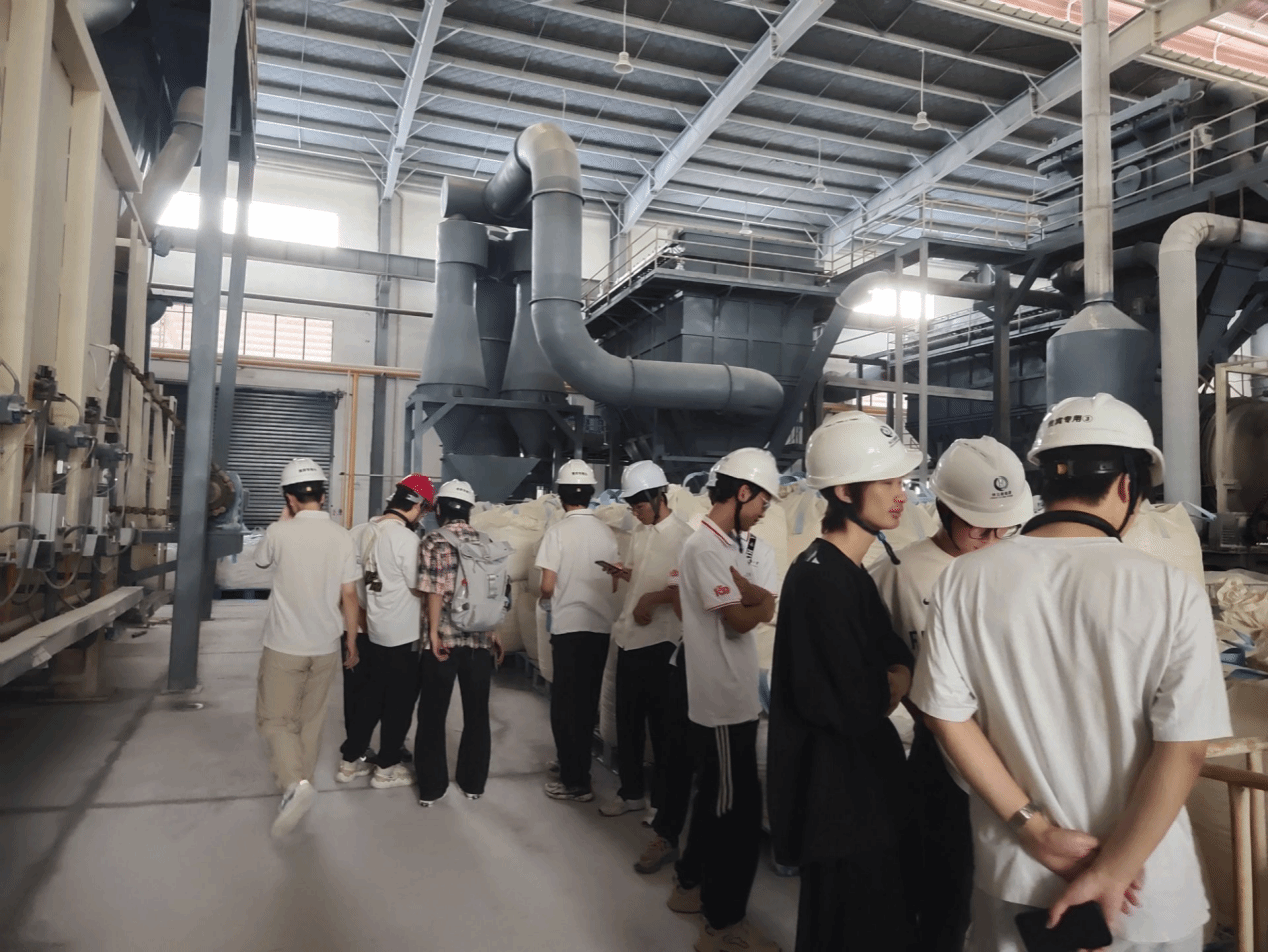 接着,林立新能源公司领导和研究人员带领同学们参观了生产车间,展示了磷酸铁的半成品及烘干粉碎后的成品。同学们深入厂房,了解了从原材料到成品的整个生产流程,拓宽了视野,增长了见识。