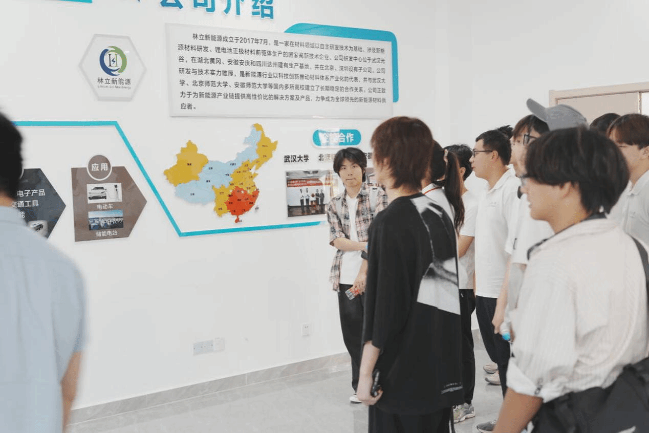 随后,林立新能源公司领导带领同学们参观了公司的文化宣传室,详细介绍了公司的产业链及磷酸铁锂的制作工艺。在实验室内,研究向大家展示了磷酸铁锂的粒度、PH值、比表面积等性质的测定过程,并介绍了研究团队的组成情况。实验室的设备和技术,让同学们切身感受到企业在科研上的投入和成果。