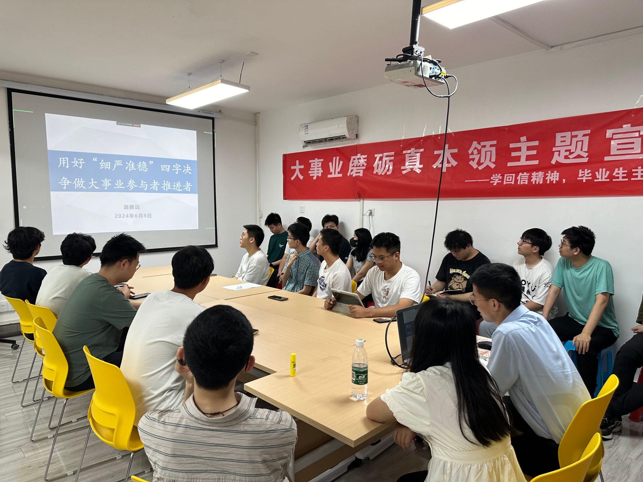 据悉,本次毕业生主题宣讲与学院一站式学生社区紧密结合起来,走入学生宿舍,给将进入人生新阶段的毕业生们深刻的启迪,优秀校友的宝贵经验为其即将开启的全新人生征程做好扎实的准备,应始终胸怀“国之大者”,接续砥砺奋斗,练就过硬本领,勇攀科学高峰,为实现高水平科技自立自强和建设教育强国、科技强国、人才强国,全面推进中国式现代化作出新的更大贡献。千千万万武大学子在不同的舞台上为强国建设、民族复兴而奋斗,电气学子也投身自己所在的事业,磨砺自己的真本领。