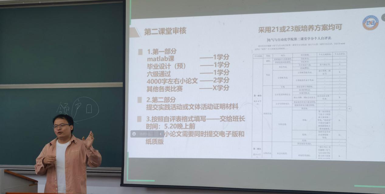 本科2021级三位兼职辅导员刘乳燕、梁美欣、张浩杰老师分别围绕毕业季近期重点工作安排、就业系统填报、档案去向登记、政审表填写、第二课堂学分审核等内容进行分享。其中,在日常管理上,要求同学们继续坚持日报平安工作,并重点强调了离校前的安全注意事项,包括防范电信诈骗、杜绝酗酒滋事、遵守法律法规等。