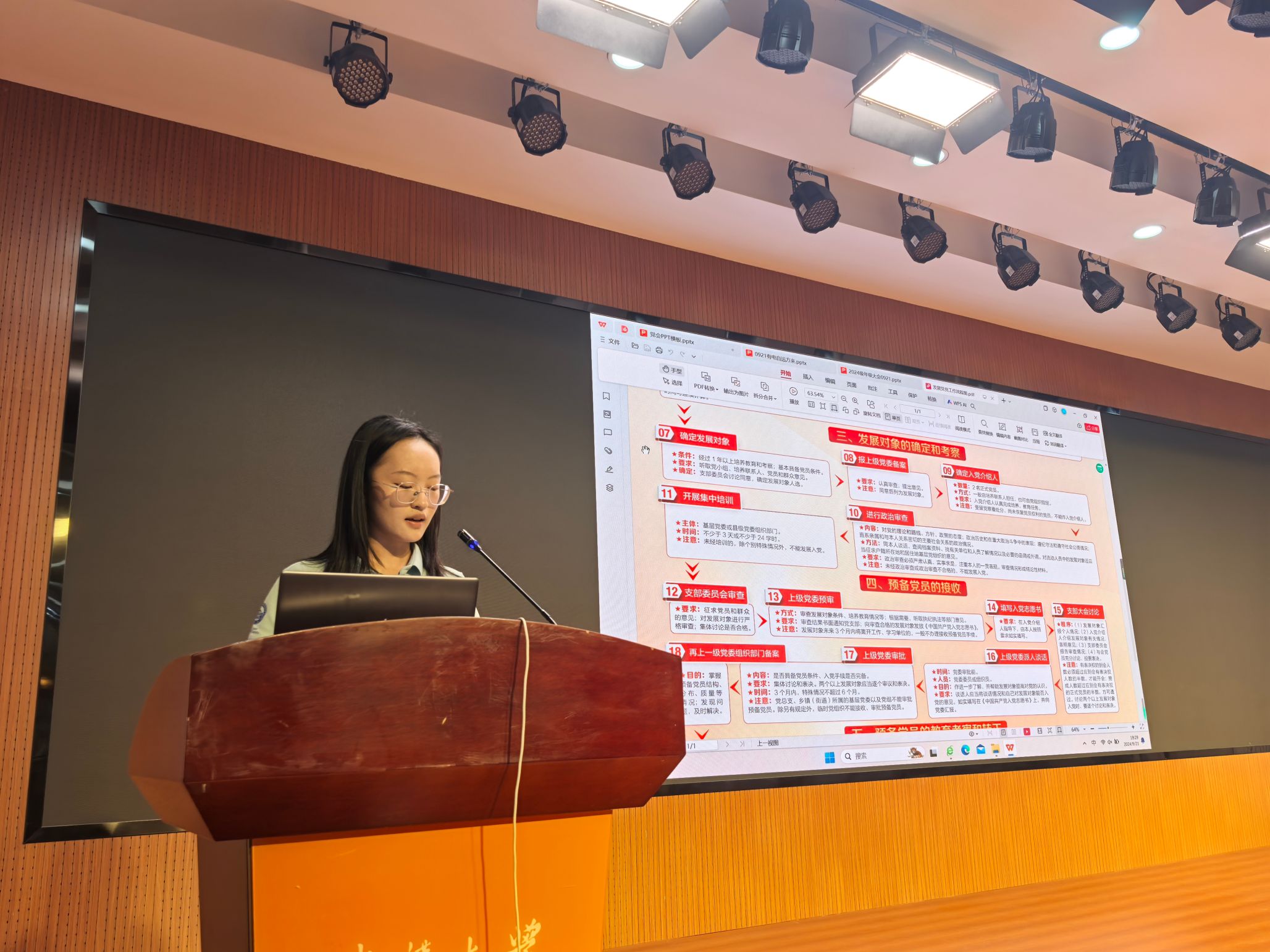 “百年征程波澜壮阔,百年初心历久弥坚。”接下来,电气8班班助罗海宁向同学们介绍入党流程。4个身份、5个阶段、25个步骤……罗班助讲解细致,举例生动,答疑耐心。同学们纷纷表示茫然一扫而空,希望加入伟大、光荣、正确的中国共产党的信念更加坚定!