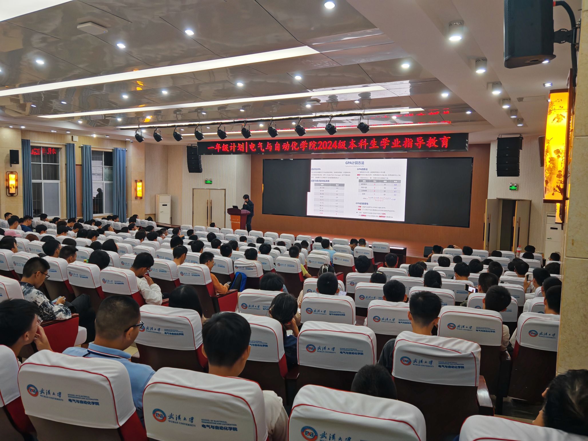 会议中,学长们首先通过具体公式和数据向大家详细讲解了大学课程的给分构成、绩点的算法和奖学金类型,让同学们对大学学习的整体框架有了初步的认知。