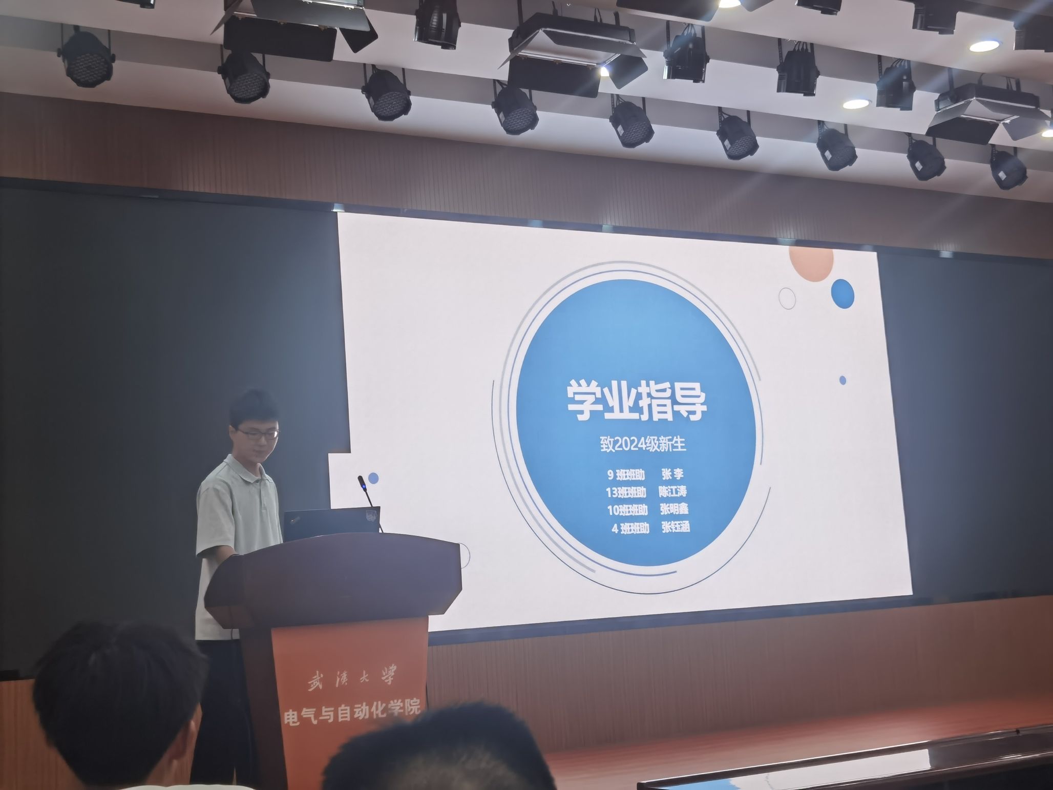 报告厅面向2024级全体本科生召开两场学业指导教育分享会,本次会议由学院2024级本科生张书瑄主持,辅导员周兵奇老师参加,两场分别由曾获国奖的班助陈江涛和张明鑫担任主讲人进行分享。