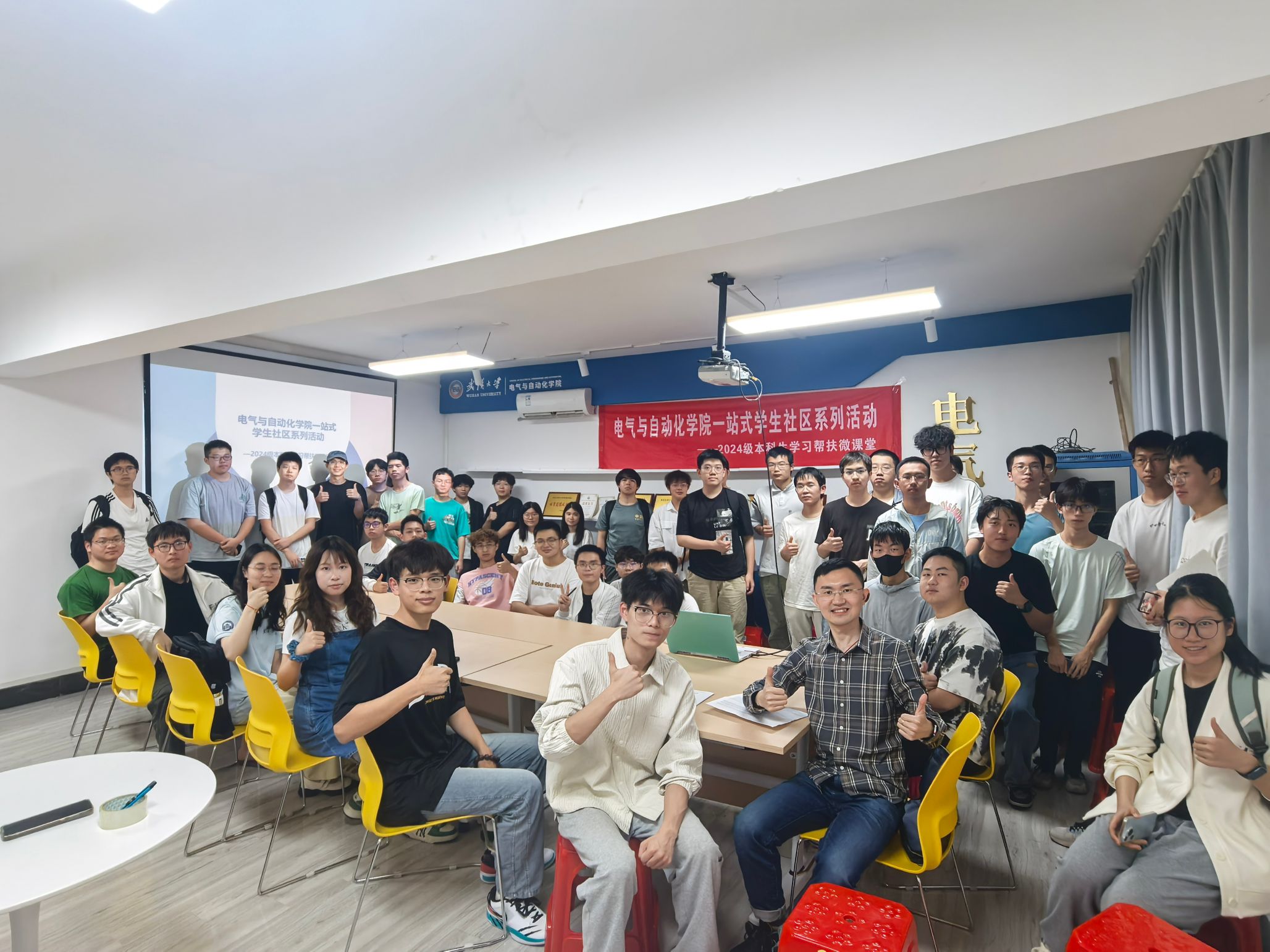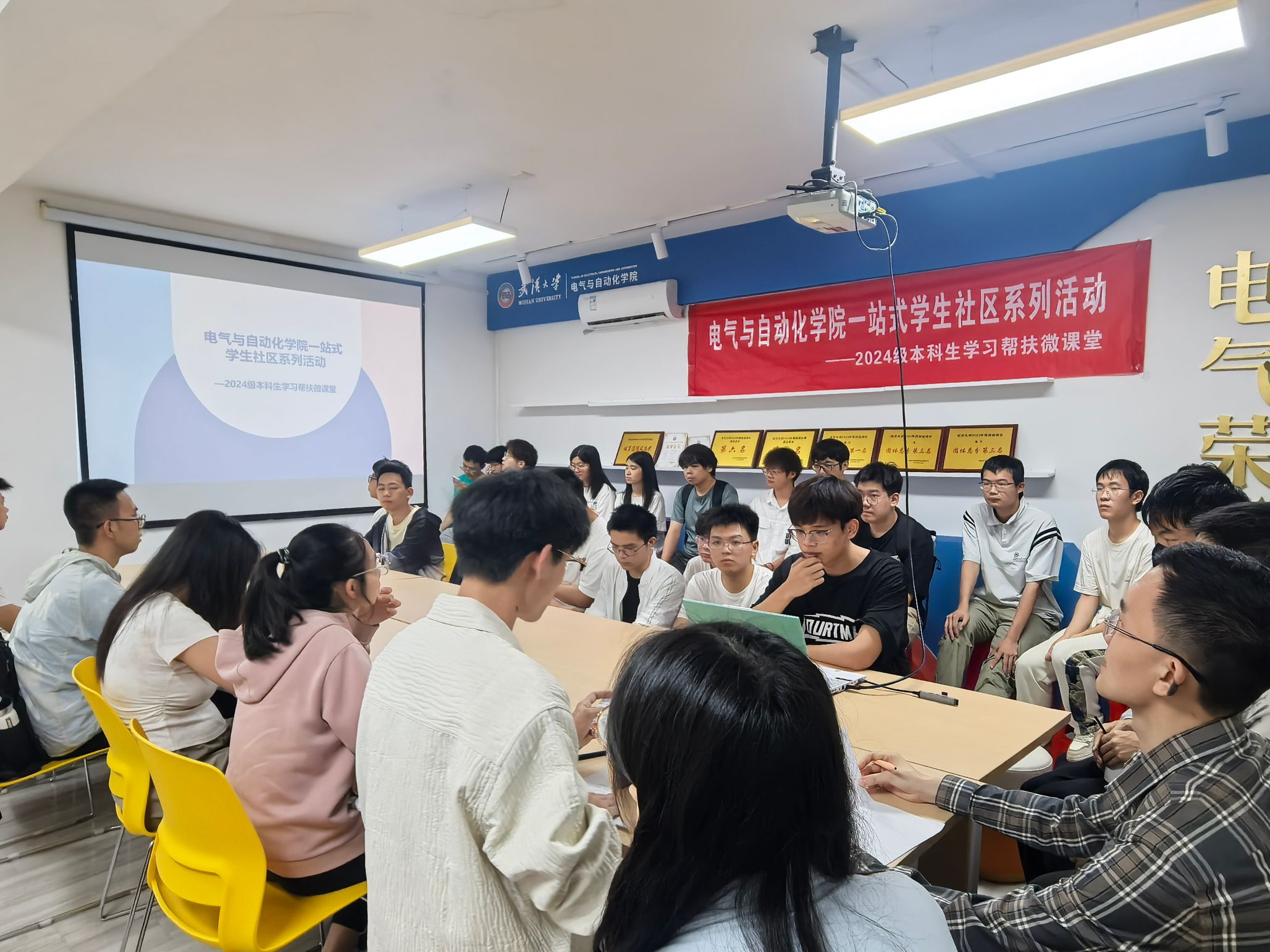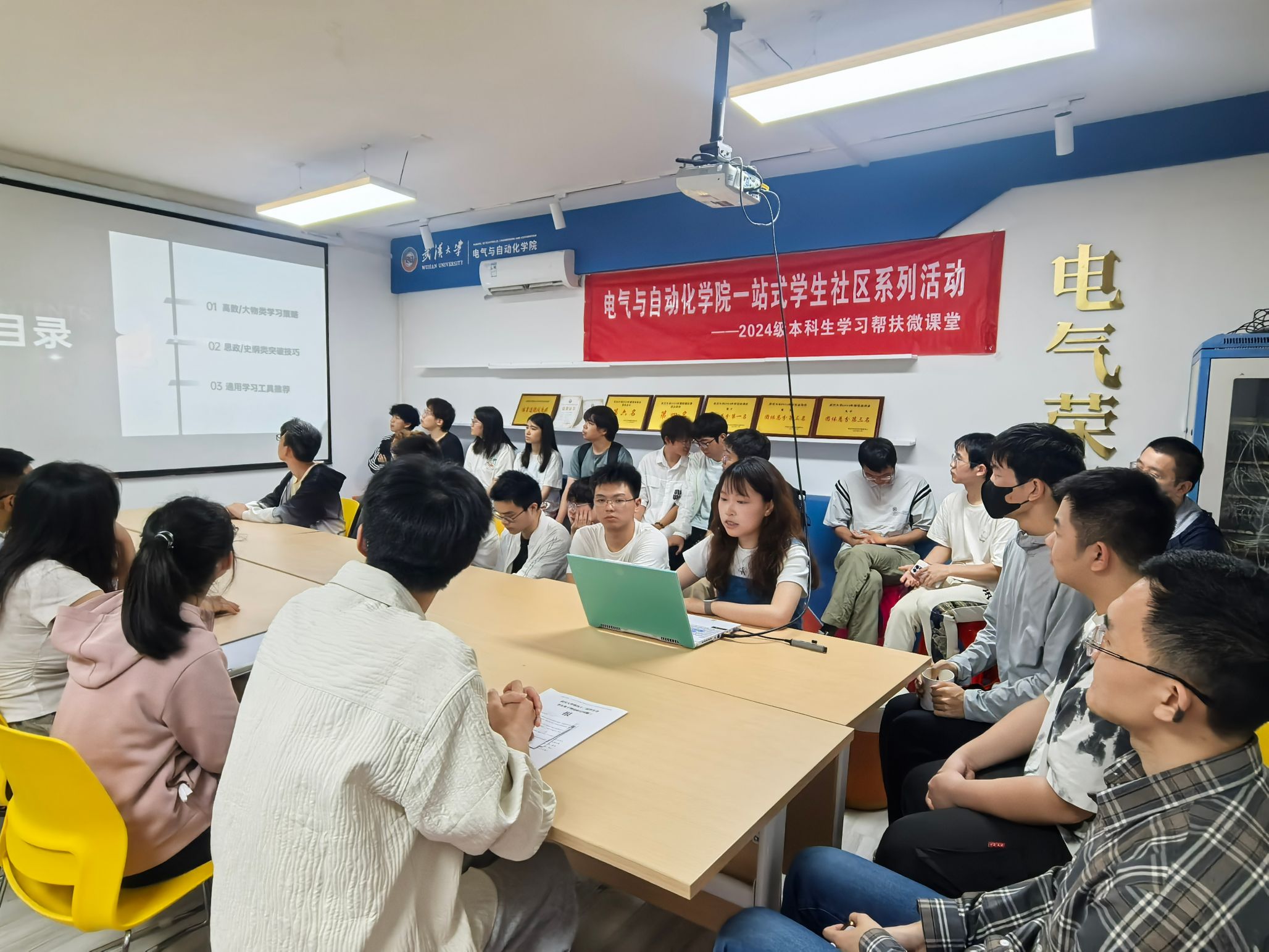 5月15日下午,2024级本科生学习帮扶微课堂在工学部二舍616活动室顺利开展。本次活动由学院青马班班长张天翼同学主持,电气学院2023级与2024级优秀学生李远鹏、孟飞扬受邀分享学习心得,2024级本科生辅导员周兵奇老师、兼职辅导员何湘凌老师出席,部分学习存在困惑的2024级本科同学积极参与其中。