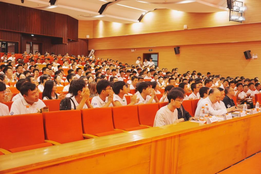 会议第五项,2022级老生代表蔡政男发言。蔡政男作为22级总绩点排名第一的同学,与新生们交流了大学三年来的探索感悟与情怀。始于热爱的探索、成于坚守的专注、归于家国的情怀三个关键词完美地概括了蔡同学发言的主题。也正是这些宝贵而又美好的品质托举着蔡同学如今这般振翅高飞,也希望这些精神同样能够带给新生们蓬勃的力量。