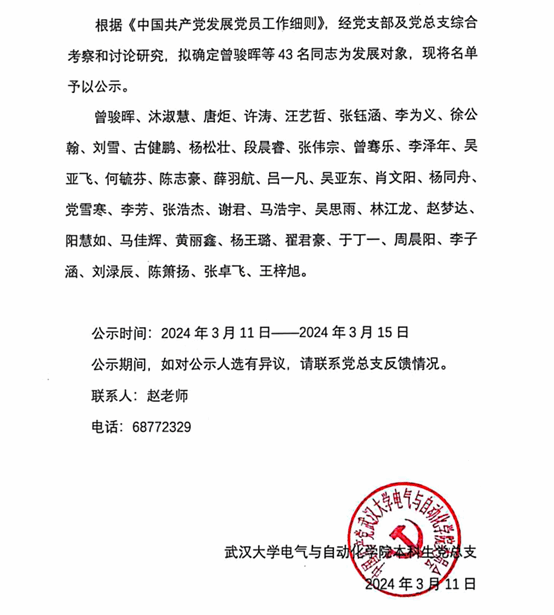 本科党总支|5楼自拍 本科生2024年3月发展对象名单公示
