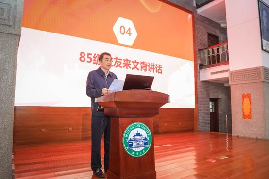 学院85级校友来文青在发言中表达对母校培养的感激之情和对当年任教老师的崇高敬意。他回顾了自己个人发展与国家电力事业紧密结合的奋斗历程,勉励青年学子传承前辈精神,自立自强,实干担当,在推动学科发展、服务国家需求中实现人生梦想。