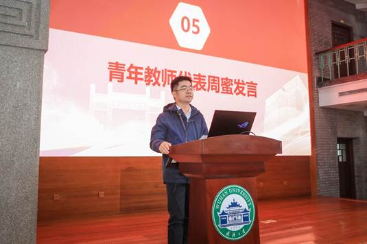 周蜜作为青年教师代表发言,他结合自己在学院本硕博求学、留校任教的22年经历,深情表达了对学院提供优良学习成长环境和教学科研平台的感激。作为学院教师,他将继续拼搏奉献,砥砺奋进,落实立德树人根本任务,为学院创建世界一流再铸新的辉煌努力。